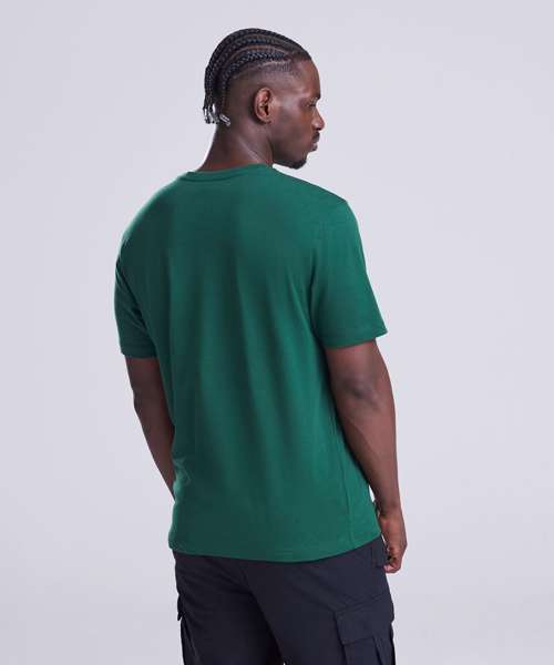 Relaxed fit T. Short sleeves. Side seams. PurePrint BC Cotton fabric. Taped back neck. Twin needle stitch details. Ribbed crew neck. Size label only for easy rebranding.